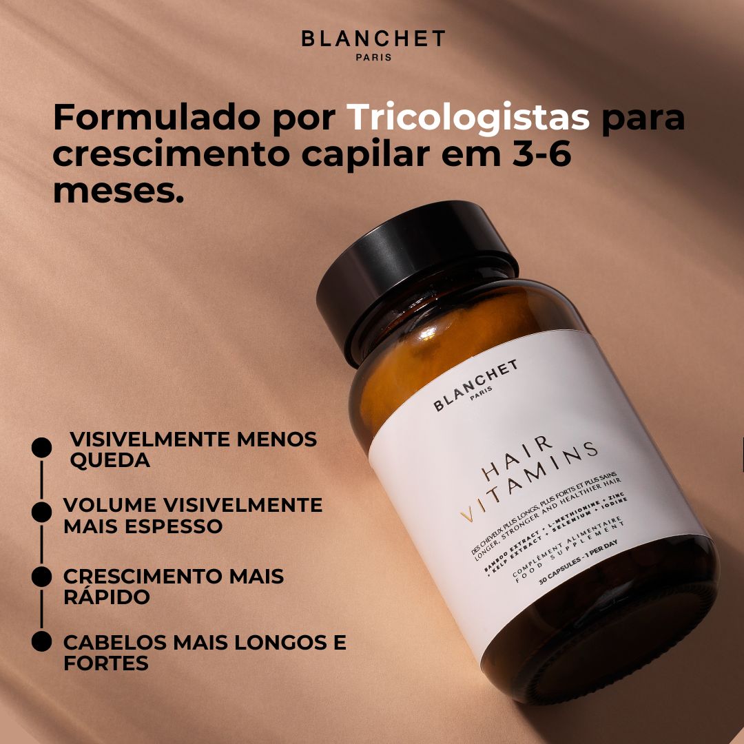 Desenvolvido por tricologistas, apoiados na ciência, este suplemento exclusivo Blanchet assegura uma combinação de vitaminas essencial que atua sobre a prevenção da queda capilar e na recuperação de cabelos danificados, com resultados visíveis em 3-6 meses.